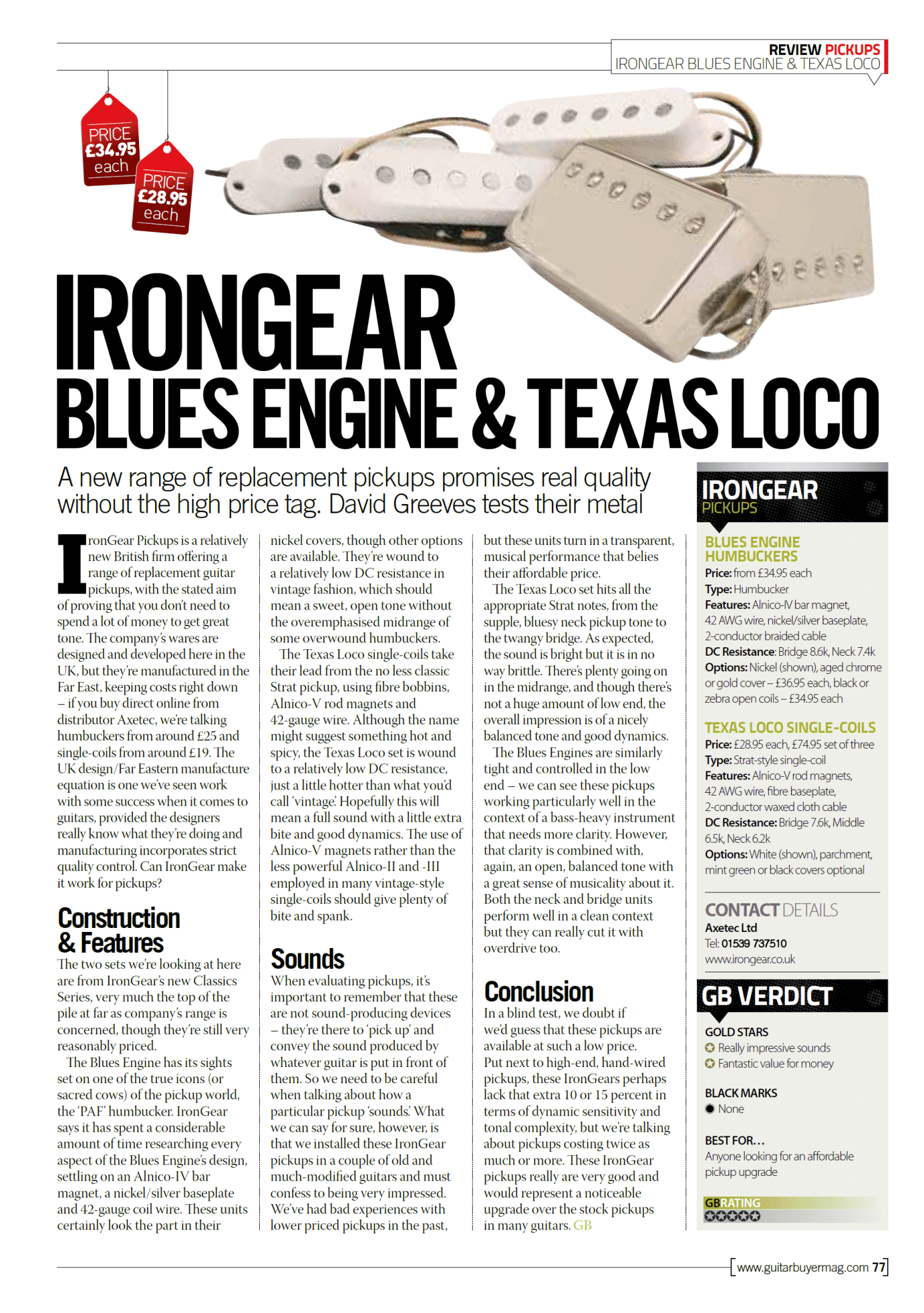 All IronGear Premier Pickups are designed and developed in the UK. These are the pickups upon which the IronGear reputation was built! Every pickup offers amazing tone and exceptional value for money. Thousands of satisfied users have enabled the IronGear name to become synonymous with quality and tone.